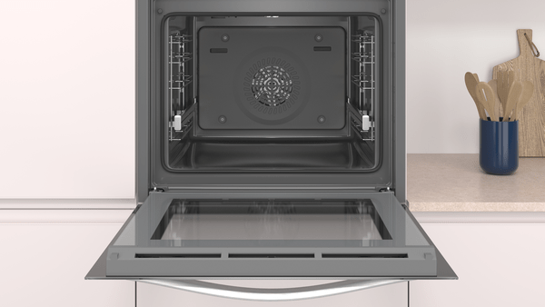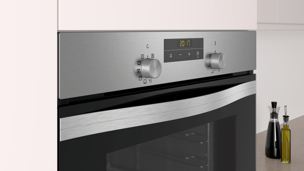Horno Serie Acero con raíles telescópicos Comfort, el diseño clásico del acero con las mejores prestaciones de ahora.