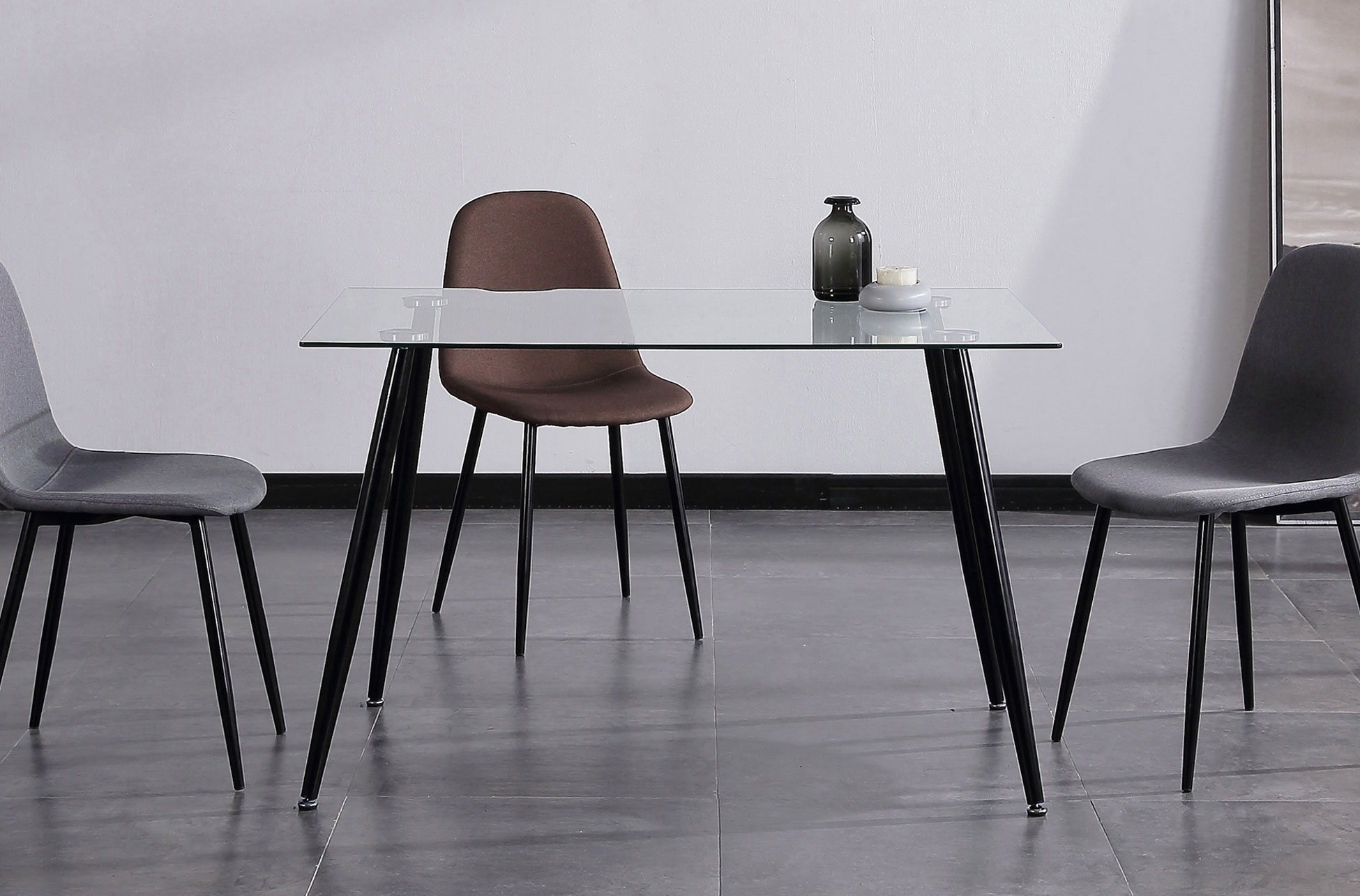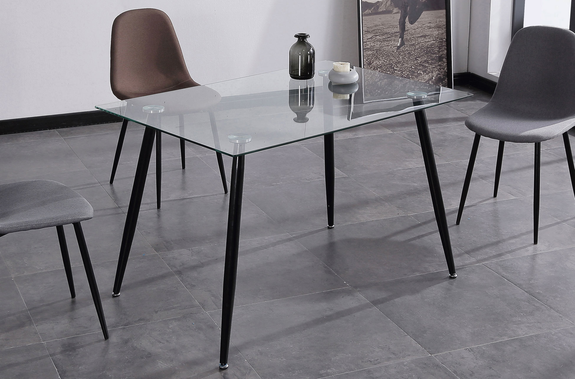 – Cristal templado transparente. – Patas metálicas color negro.